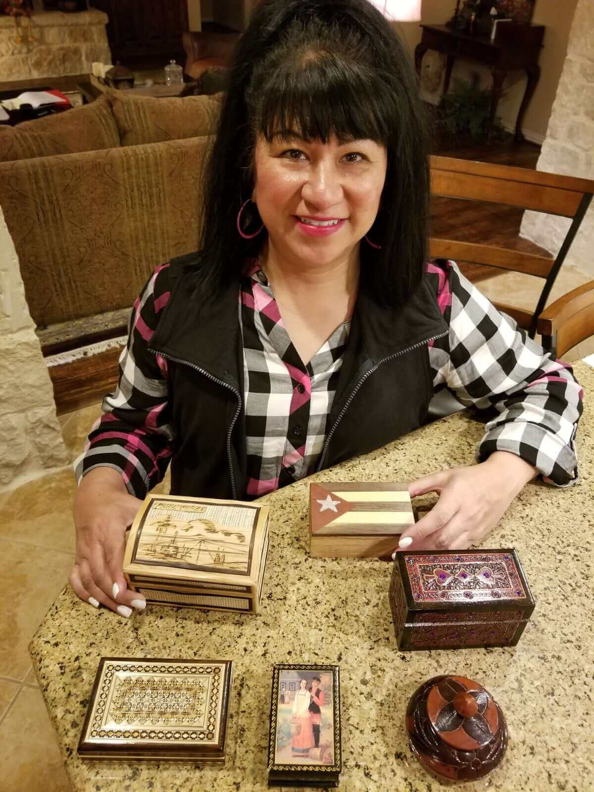 I like to accessorize my home with things that have meaning to me. The boxes that I’ve chosen represent a few of the places I’ve traveled. The unique materials are specific from where I’m visiting and the artist who created the design are all special. When I see them around my house, they remind me of the people I’ve met and the places I may only see once in my lifetime.